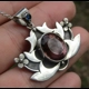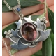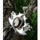 Amethyst Sterling Silver pendant. Beautiful translucent Uruguyan Amethyst set on an exclusive and original Lotus Flower Brum Design with a highlight of blue faceted Sapphire from Burma on top.