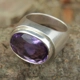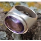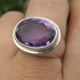 Exclusive Amethyst Sterling Silver ring. Beautiful faceted cabochon cut (16x12mm), natural genuine gemstone set on an original, one of a kind Brum Design. Amazing gemstone set on a robust design.