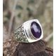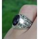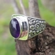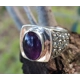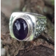 Exclusive Amethyst Sterling silver ring. Beautiful dark oval Amethyst cabochon set on a unique handmade engraved Brum Design ring. Genuine natural gemstone st on a one of a kind Brum Design. Unique piece of jewellery hand engraved on a thick robust band.