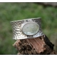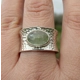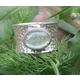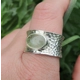 Exclusive Aquamarine Sterling Silver ring. Cabochon cut (11x8mm approx), natural genuine gemstone set on an original textured Brum Design. Beautiful stone with rutilated inclusions.