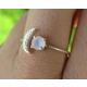 Amazing Half Moon Ring, featuring a beautiful round Moonstone, perfect blend of elegance and celestial charm. Crafted with high-quality Sterling Silver. The adjustable band ensures a perfect fit, allowing you to wear it on any finger sized between 9 and 10.