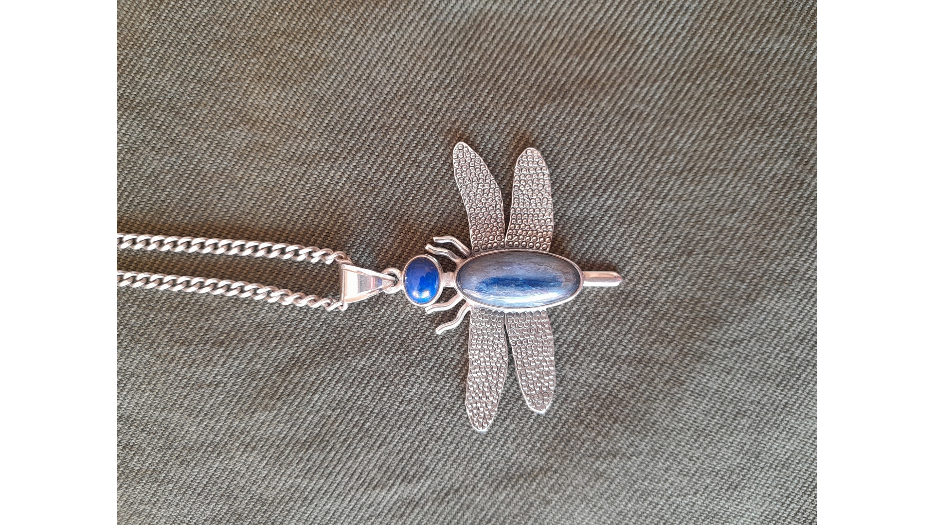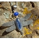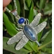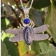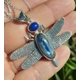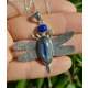 Dragonfly Sterling Silver pendant. Exclusive one of kind beautiful Brum Design piece, featuring a Kyanite cabochon (21x11mm) and a Lapis Lazuli on top (8x6mm).