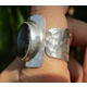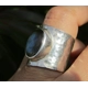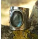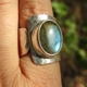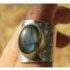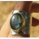 Exclusive Labradorite Sterling Silver ring. Beautiful cabochon cut (16x12mm), natural genuine gemstone set on an original and exclusive textured Brum Design. Amazing gemstone set on a robust, thick banded design.
