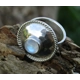 Moonstone Shield Ring on Sterling Silver. Genuine natural gemstone set on an exlusive Shield Brum Design. The stone shines with rainbow highlights. Unique, one of a kind design.