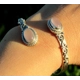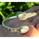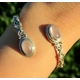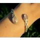 Exclusive double stoned Sterling Silver Rose Quartz bangle. Beautiful, delicate and feminine one of a kind Brum design adjustable bangle bracelet. Genuine natural cabochon cut gemstones.