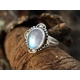 Rainbow Moonstone Sterling Silver ring. Beautiful oval cabochon cut, natural genuine gemstone with blue fire.