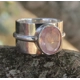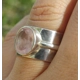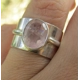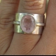 Exclusive, original Rose Quartz Sterling silver ring. Beautiful faceted oval cabochon with inclusions of adularescence effect. Genuine natural gemstone set on a unique large robust band, one of a kind Brum Design.