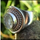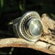 Exclusive Star Aquamarine Sterling Silver ring. Oval cabochon cut (10x11mm approx), amazing rare genuine gemstone set on an original, fine, one of a kind Brum Design.