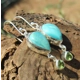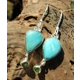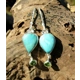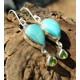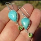 Beautiful and exclusive double stoned earrings. Cabochon cut Turquoise and faceted Peridot set on Sterling Silver. Genuine drop shaped natural gemstones in perfect combination for a modern and delicate pair of aerrings.